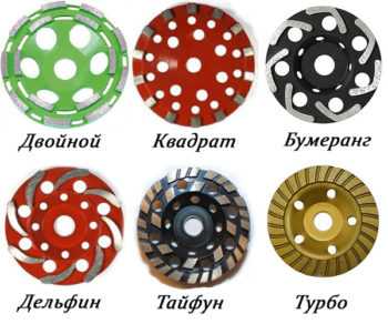 В зависимости от числа и формы алмазных сегментов все алмазные чашки классифицируют на несколько типов. Каждый диск рассчитан на работу в конкретных условиях, поэтому имеет различное назначение и сферу применения.