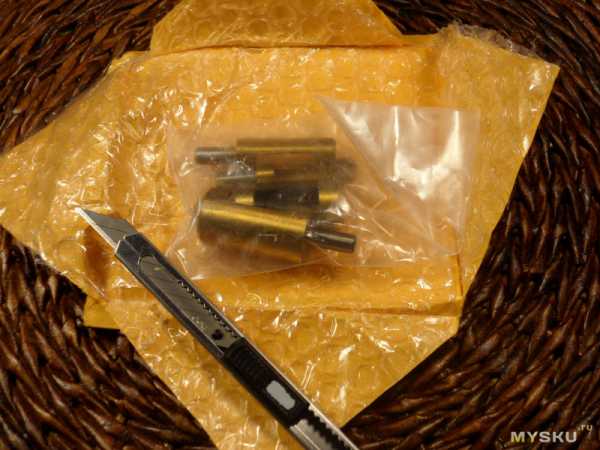 Сделаны насадки из углеродистой стали. Рабочая часть покрыта золотистым нитридом титана. Что конечно в плюс.
