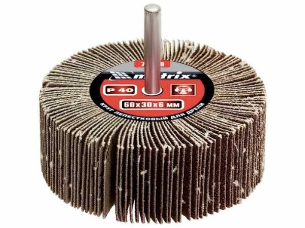 Веерные насадки применяются для обработки труднодоступных мест. Они представляют собой специальный диск, на краях которого закреплены наждачные лепестки. Вместо них, может использоваться любой другой абразивный материал. Закрепляется такая насадка стандартным способом. Благодаря ей можно хорошо отшлифовать внутреннюю поверхность отверстия.