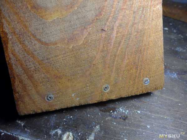 Здесь, на примере, доска уже окрашена, а деревянная заглушка нет. По хорошему и чопики и доски должны быть из одной партии древесины и должны обрабатываться одновременно.