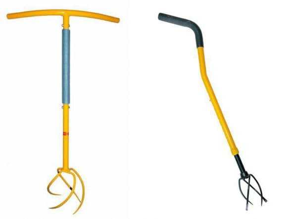 В качестве ручки подойдет черенок от лопаты или пластик – на выбор. При использовании такого культиватора земля хорошо насыщается кислородом, а сорняки вырываются с корнями.