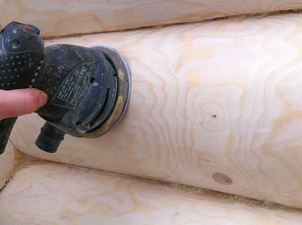 Для шлифовке оцилиндрованного бревна используют шлифмашинки