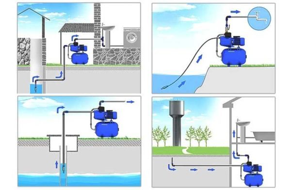 Поверхностный насос с автоматическим включением по давлению подключают в той же последовательности, что и погружной, но есть некоторые отличия: