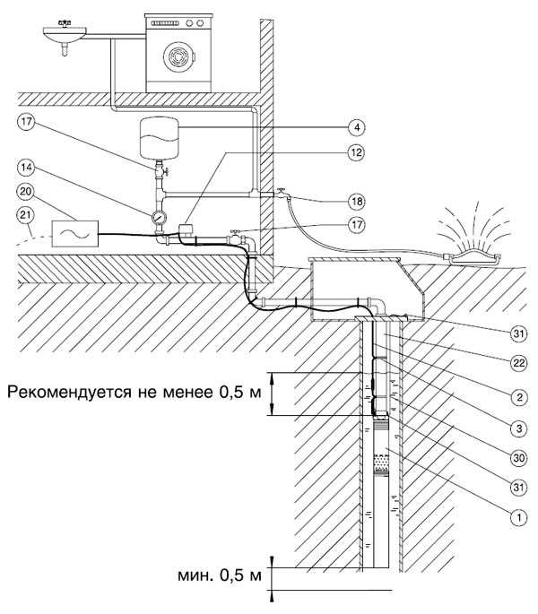 Схема водоснабжения частного дома с погружным вибрационным насосом Малыш