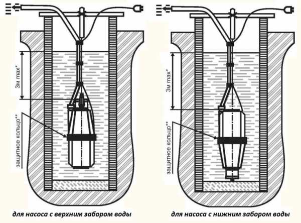 Например, подвешивание насоса на стальном тросе и без амортизатора — крепление насоса обязательно должно амортизировать! Поэтому в комплект и входит леска или нейлоновый шнур и амортизирующее кольцо для крепления.