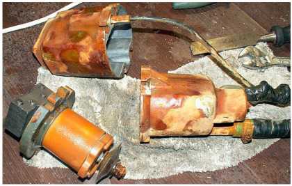 Тогда горит изоляция, подгорает компаунд и, вследствие разницы теплового расширения различных материалов, происходит расслоение заливки и выпадание ярма из корпуса.