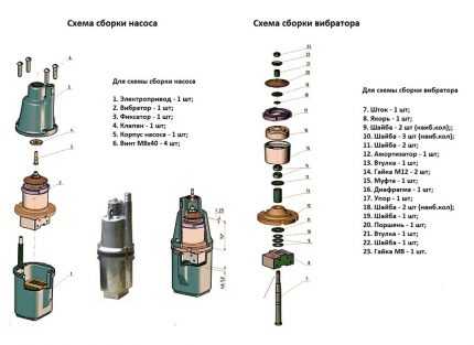 Вибрационных погружных насосов существует великое множество. Но все они имеют примерно одинаковое устройство и принцип их ремонта одинаковый