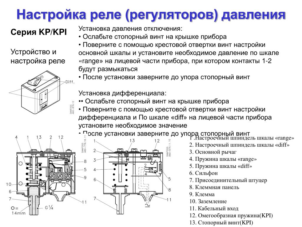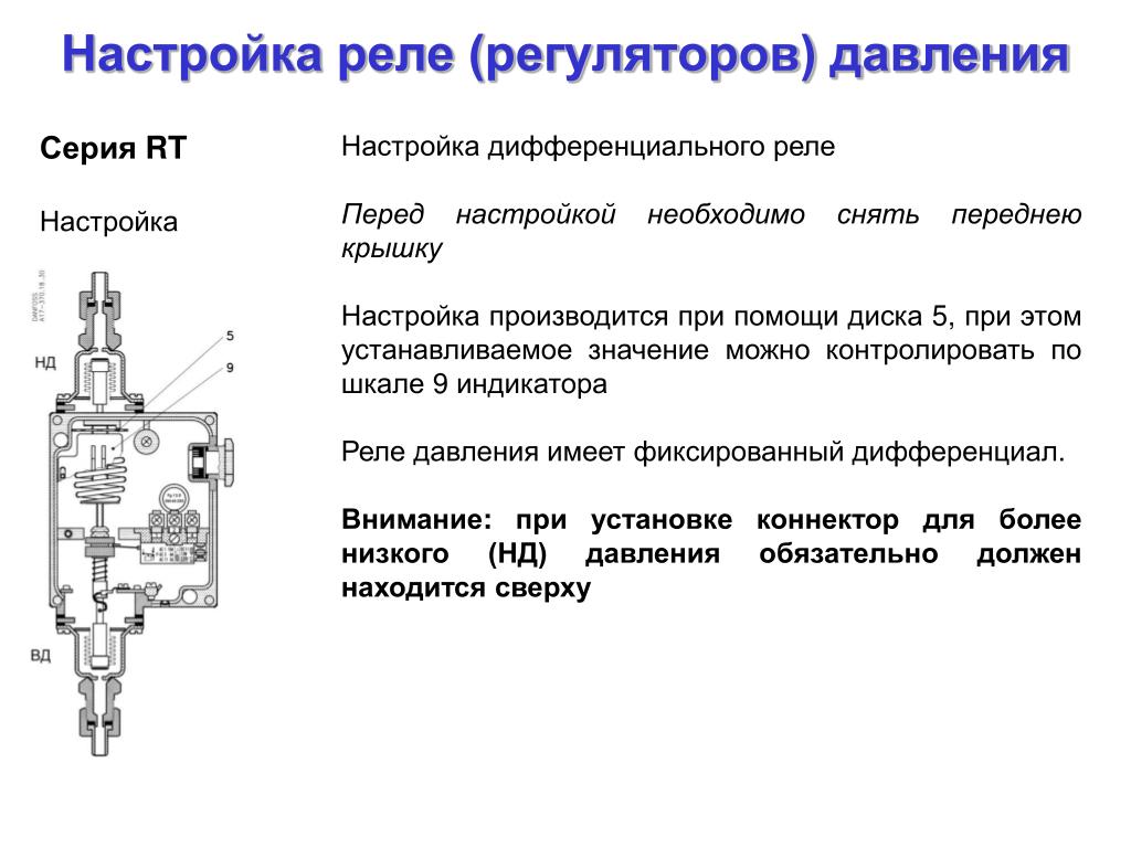 Инструкции по регулировке многих наших реле давления находятся на внутренней стороне крышки. Если для вашего реле давления нет инструкций, выполните следующие действия: