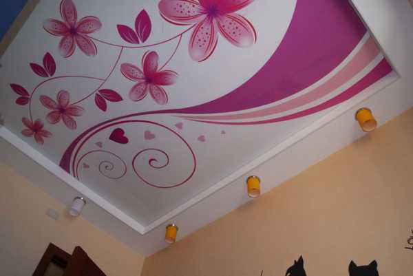При помощи фотопечати можно нанести на потолок любой рисунок в соответствии со вкусами и предпочтениями хозяина недвижимости. Такой потолок будет уместен в любой комнате. Белый потолок с фотопечатью – возможность создать эксклюзивный дизайн помещения.