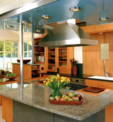 На Западе вы можете месяцами искать кухню, в которой потолки из такого родного гипсокартона. Трудно найти и натяжные потолки. Все потому, что сегодня двухуровневые потолки в Европе и в США принято делать из элитных потолочных панелей, а также из дерева и камня.