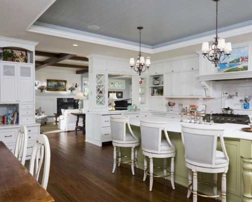 Типовая французская кухня с двухуровневыми потолками полностью соответствует нашим представлениям о стиле прованс