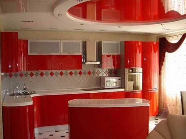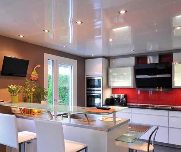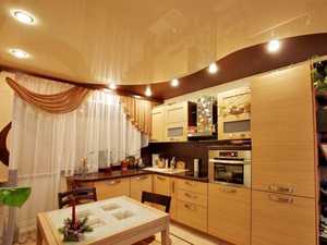 Обратите внимание! Если хотите установить глянцевые потолки, но опасаетесь, что швы испортят облик кухни, выбирайте двухуровневую конструкцию – фигурная композиция и переходы по высоте сделают места соединения незаметными.