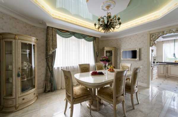 Двухуровневые потолки в России были, и не следует думать, что их начали создавать лишь после появления гипсокартона на рынке стройматериалов. Вспомните потолки в царских обеденных покоях, во дворцах, и вы поймете, что двухуровневый потолок в обеденном помещении – классическая традиция.