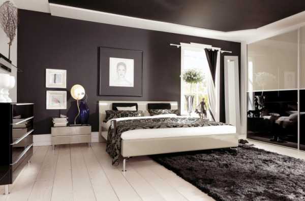 Чёрная глянцевая плёнка в дизайне спальни