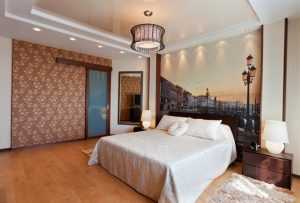 Есть у натяжных потолков один недостаток: после его установки крепление чего-либо на нем становится практически невозможным. Поэтому о конструкции и выборе освещения для спальни необходимо подумать до того, как потолок будет установлен.