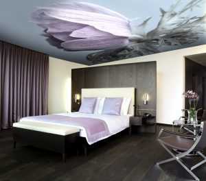 Глянцевый и матовый натяжной потолок в спальне могут изготавливаться любым цветом, кроме того, на них можно наносить разные рисунки и узоры.
