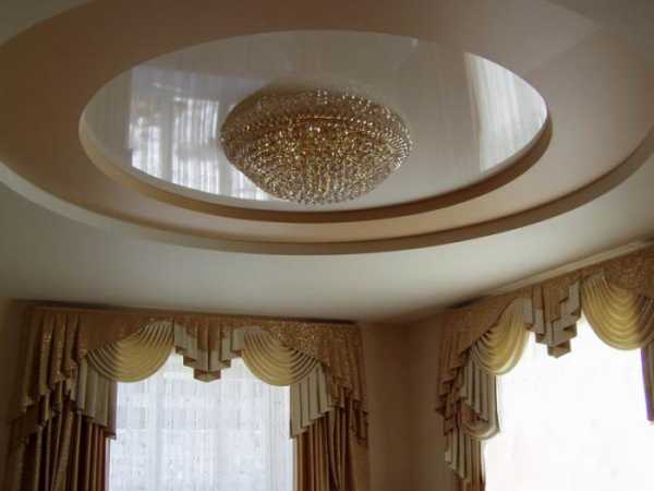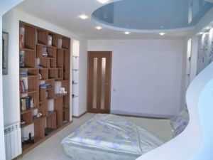 Использование гипсокартона позволяет придавать натяжным потолкам самые разнообразные конфигурации, их можно устроить в два, три, четыре уровня или с помощью перепада высот выделить какую-то часть комнаты.
