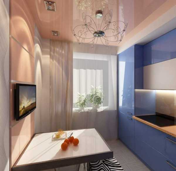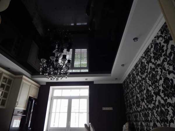 Использование глянцевого потолка на кухне