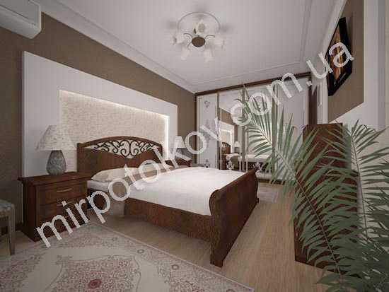 Все они могут использоваться в спальне с натяжными потолками – отдельно или в сочетании с другими видами.