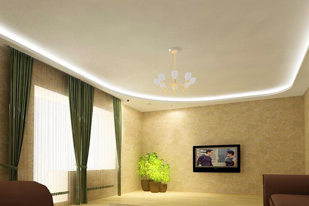 Двухуровневые потолки для гостиной из гипсокартона, фото в интерьере. Различные варианты. Пошаговая инструкция возведения двухуровневого потолка в гостиной.