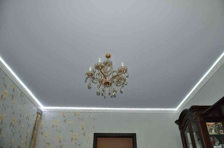 Системы освещения для матовых потолков используются такие же, как для натяжных покрытий других фактур. Встроенные светильники, накладные и подвесные люстры здесь ничем не отличаются от лака или сатина.
