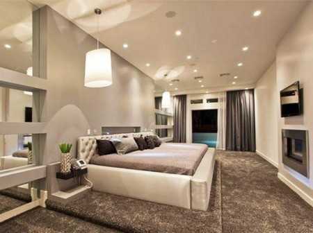 В современном дизайне есть много решений по оформлению спальных комнат, хозяевам квартиры остается только выбрать подходящий вариант, который будет для них более комфортным. До недавнего времени освещению спален уделялось меньше внимания, чем другим интерьерам. Обязательные прикроватные светильники выбирались и устанавливались после окончания ремонта, а верхнее освещение создавалось из более-менее симпатичной люстры. Более грамотным подходом следует признать подготовку проекта с дизайнерским органичным оформлением деталей. В том числе – системы освещения, в которых световые приборы вписываются в общий стиль и располагаются максимально удобно. Смотрите фото.