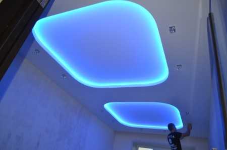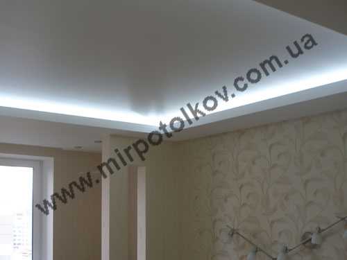 Люминесцентная лампа6. Светодиодные ленты отлично смотрятся с натяжным потолком. Нагревание минимально, КПД высокий, потребление энергии небольшое, см. фото.
