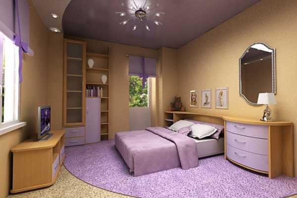 Потолок в спальне: фото фиолетовой отделки