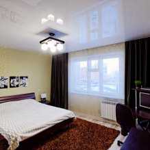 Натяжные потолки, фото: для спальни используется комбинация из матовых и глянцевых поверхностей
