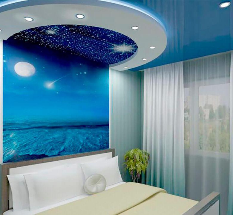 Натяжные потолки фото для спальни с рисунком 3д: как сделать в квартире