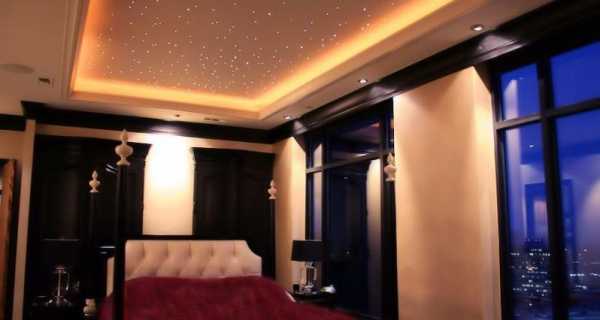 Освещение в виде «звёздного неба» необходимо проектировать до начала монтажа потолка. Так как будет необходимым наличие двух полотен – из светонепрозрачной ткани и полупрозрачной плёнки.