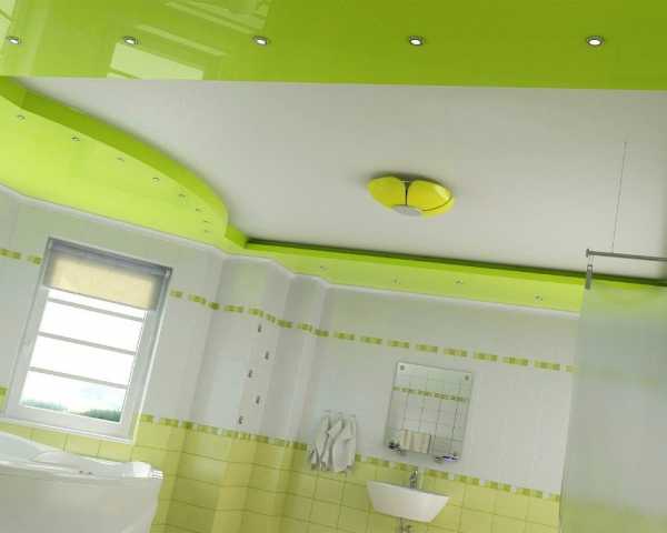 Глянцевое натяжное полотно в раме из гипсокартона — вариант двухуровневого потолка для вашей ванной