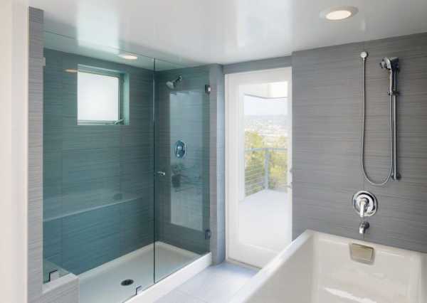 Благодаря отражающей способности такого потолка, ванная кажется больше