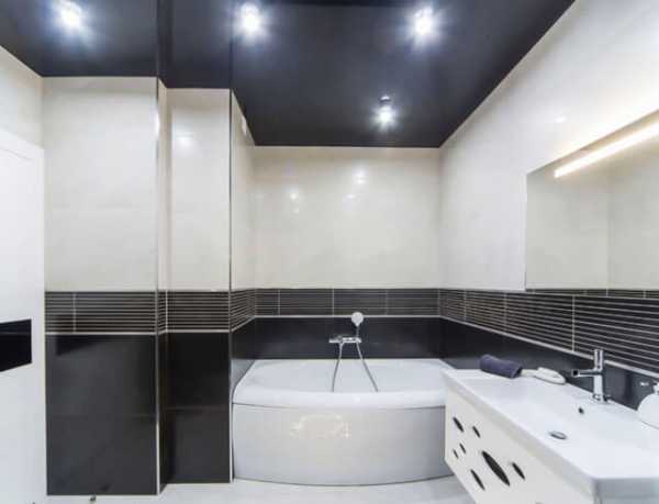 Стильный элемент вашей ванной комнаты — натяжной потолок, особенно, когда он выполнен в черном цвете