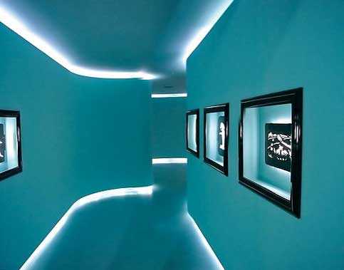 Обычный узкий коридор с помощью грамотно сделанной подсветки становится чем-то нереальным