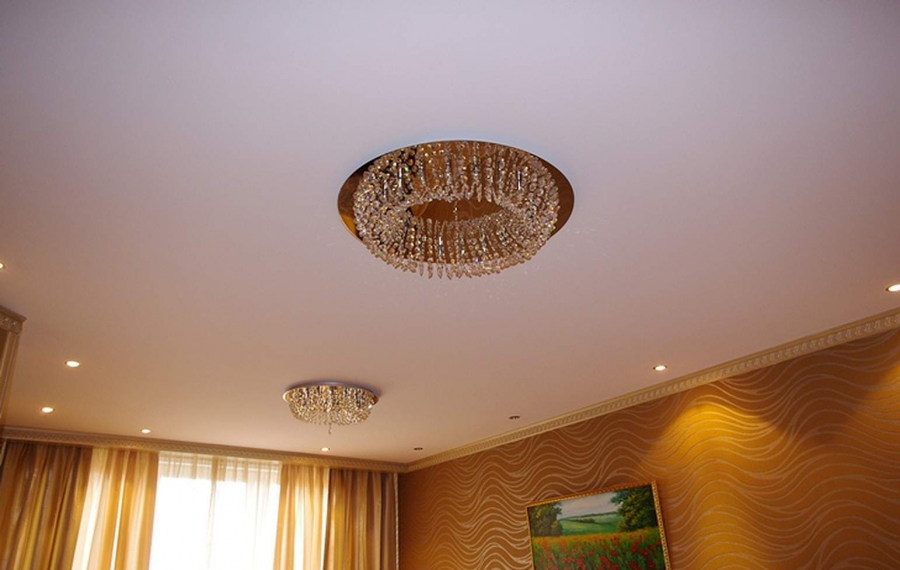 Полезный совет! Перед установкой натяжной конструкции необходимо решить, какой тип освещения планируется использовать. Нужно заранее подготовить места для установки электроприборов.