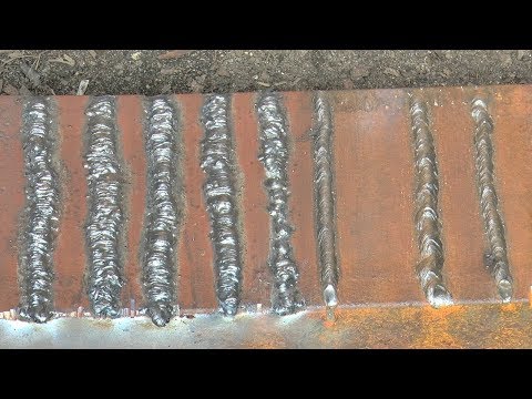 Поэкспериментируйте с настройкой силы тока на вашем сварочном аппарате, пока вы рисуете валики сварного шва на металлоломе. Когда сила тока слишком низкая, вы получите много залипаний и фальстартов. Кроме того, флюс будет труднее отделяться от сварного шва. Когда сила тока слишком высока, вы прожжете дыру в металле через несколько секунд. Хорошая настройка силы тока позволяет вам непрерывно сваривать верхнюю часть металла, не прожигая дыру и не прилипая к заготовке. Регулировка параметра силы тока контролирует количество тепла, которое вкладывается в работу, и это то, что делает хорошего сварщика.