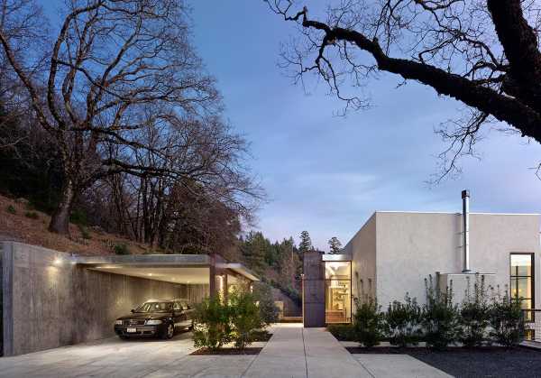 Навес для машин в нише современного дома