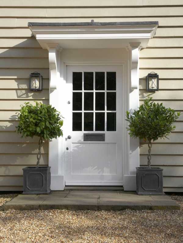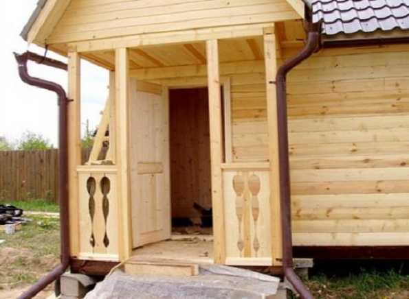 - Хорошо, если навес будет защищать не только входную дверь, но и крыльцо целиком.