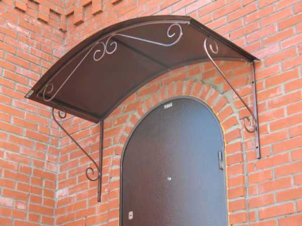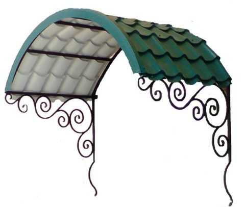 Навес с элементами ковки выглядит достаточно презентабельно. И относится к разряду дорогостоящих материалов. Его установка требует ответственного подхода, поэтому монтаж лучше доверить специалистам. От качества креплений будет зависеть срок службы козырька, – какой хозяин будет рад, если новый навес рухнет после первого же снегопада.