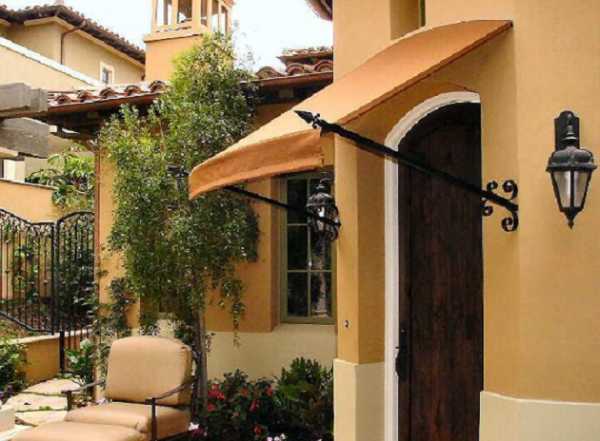 Ранее, например, мы писали, что козырек крепится на стене над входной дверью. Но ведь навес в виде козырька может перекрывать всю стену и крепиться, например, по углам.