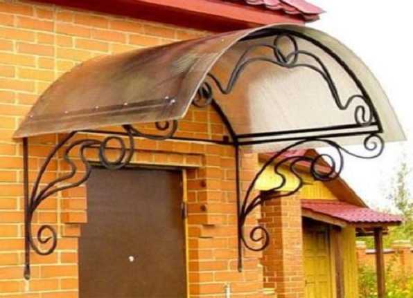 Внешний вид козырька из поликарбоната можно украсить ковкой. Узоры можно сделать самостоятельно путем сгибания проволоки.