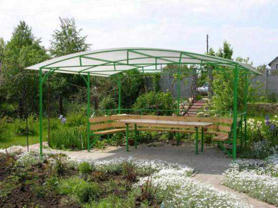 Построить конструкцию своими руками очень просто. Чаще всего навес сооружают для защиты автомобиля или другой техники, которая располагается во дворе дома. Они могут служить и как устройство для перекрытия беседки.
