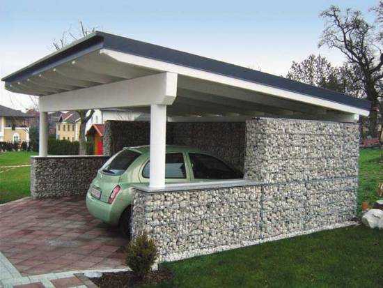 И в завершение еще немного фото навесов, которые, возможно, подадут вам идею для вашей собственной даче. На первом фото вы можете видеть навес, несущая конструкция которого частично выполнена из габионов, область применения которых очень обширна. Подробнее о них можете узнать, перейдя по приведенной ранее ссылке.