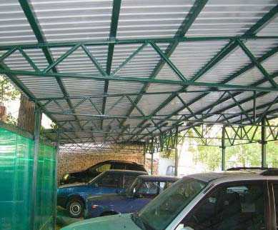 Навес из профнастила с каркасом из квадратных профильных труб для автотранспорта