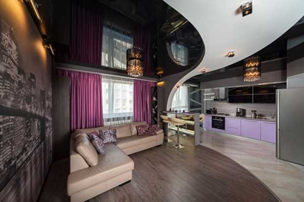 Разрабатывая проект двухуровневого натяжного потолка, следует учесть несколько моментов: желаемый эстетический результат и функциональную целесообразность. С помощью двухуровневой конструкции вы можете скрыть любые неровности потолочных перекрытий и эффектно обустроить освещение. Не стоит со счетов сбрасывать и возможность зонирования пространства. Для этого используется комбинирование разных фактур, цвета и формы натяжного полотна, что не только разделяет комнату на отдельные зоны, но и оптически ее увеличивает.