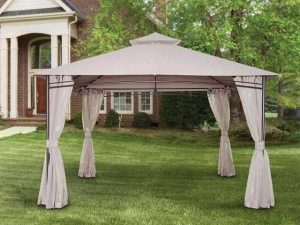 Особый садовый тент шатер, в который входит крыша и подобие качелей. Такие павильоны можно сделать своими руками. Такой тип сделан исключительно для украшения веранд. Минусами такого шатра являются малая вместимость и слабая защита от погодных условий. Если будет необходимость, такой тент можно оградить москитной сеткой.
