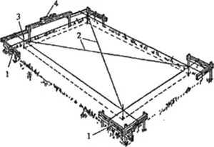 - В углах образовавшегося углубления пробуриваем гнезда для установки опор. Отверстия временно закрываем, чтобы избежать их засыпания.