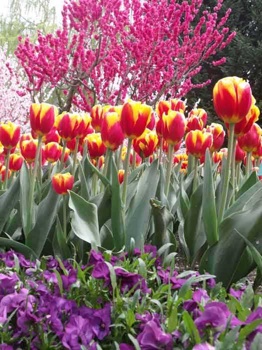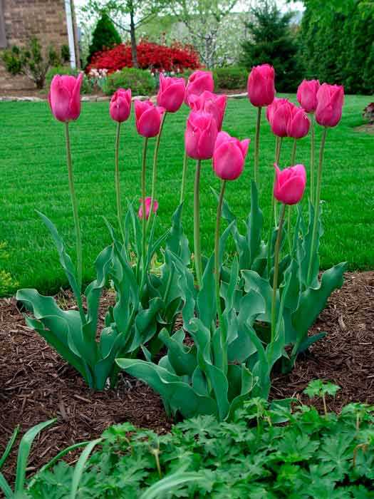 Лучше всего комбинировать посадки луковичных цветов с другими многолетними растениями, кустарниками или сажать на место отцветающих луковичных растений однолетние цветы, чтобы скрыть пожухлую листву, но луковицам дать возможность набраться энергии и сил для следующего своего цветения.