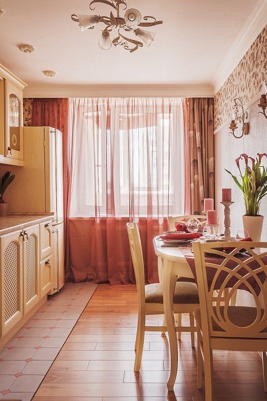 - Занавески не должны быть слишком длинными если плита недалеко от них. В противном случае нарушается противопожарная безопасность.